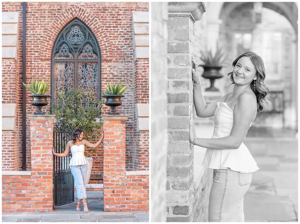 After we finished at the museum (and after I stopped telling myself I’d take “just one more”), we drove down the street to St. Paul’s Episcopal Church for her final outfit. I had one specific portrait planned, but the light was sneaking through the trees across the street and casting a harsh shadow right where I needed Elle to stand. Thankfully, her mom was more than willing to hold up my changing tent to block the light long enough to get the shot. That little bit of teamwork made all the difference. The light softened beautifully and we ended the session with so many favorites that narrowing them down for this post was almost impossible.